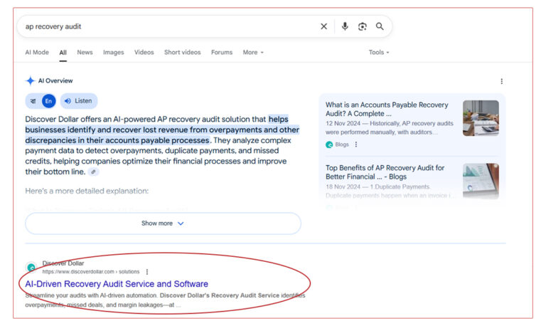 • Consideration Stage: “Why Discover Dollar is the Best Accounts Payable Recovery Audit Solution?” (Comparative positioning, vendor evaluation)