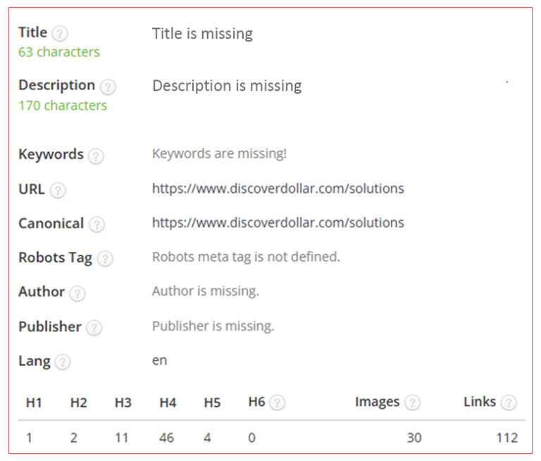 • Missing technical fundamentals: No proper title tags, meta descriptions, header hierarchy