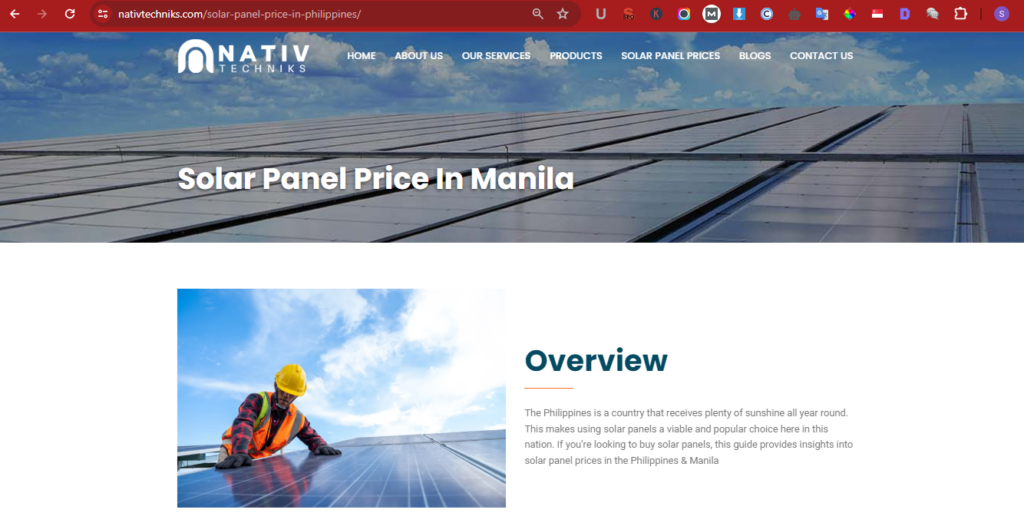 Nativ Techniks specializes in delivering cutting-edge solar panel solutions tailored for the Philippines, focusing on residential and commercial solar installations. With sustainability and innovation at their core, they empower homes and businesses to harness solar energy, reduce costs, and minimize environmental impact. Yet despite being in a booming market, their digital presence was negligible.