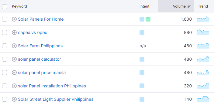 • Decision Stage (BOFU – Bottom of Funnel): Transactional keywords like “best solar companies Philippines,” “how many panels do I need,” “solar water pump benefits for farmers”.