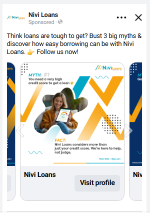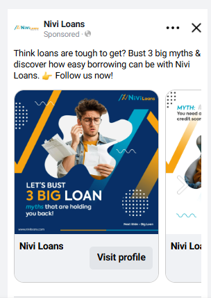 Mobile-first carousels outperform for loan products. Simplified messaging in carousel format resonated better than static ads for personal loan lead generation.