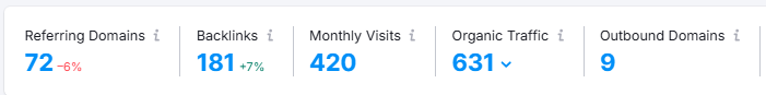 • Referring Domains: 72 (slight decline)