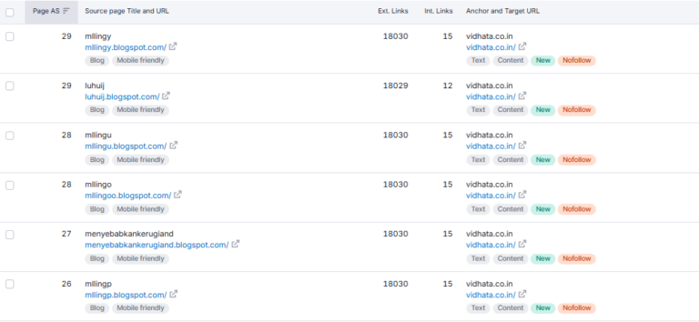 Vidhata’s backlink profile was analyzed in depth, revealing both strengths and clear areas for improvement.