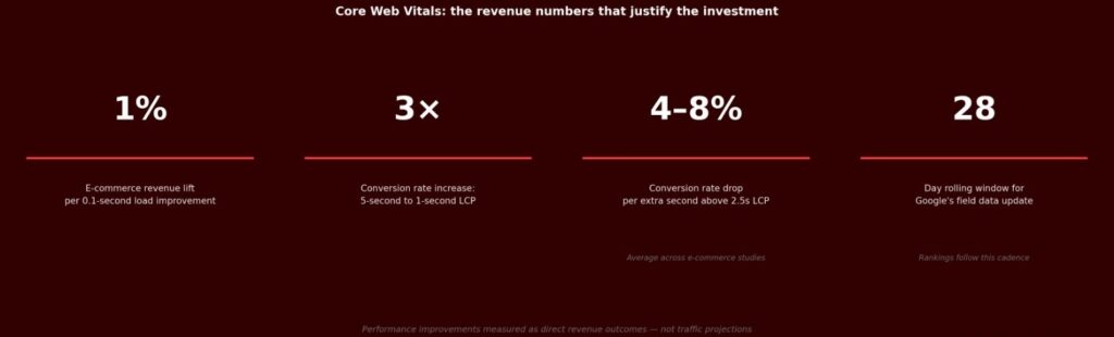 The commercial argument for Core Web Vitals investment is not primarily about ranking. It is about the conversion rate consequences of poor performance, which are measurable independently of any SEO benefit.