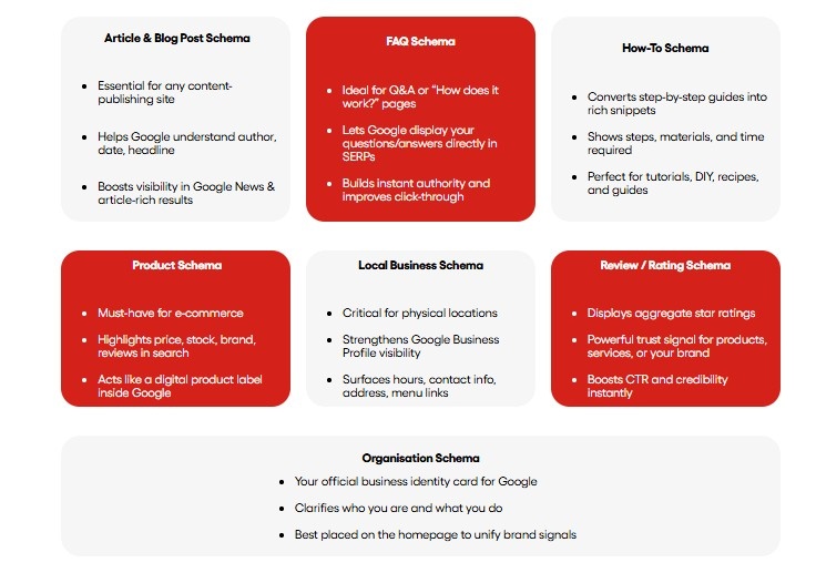 | Schema Type | Best For | What It Unlocks in SERPs |