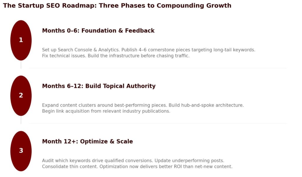 The practical implication is that startups should resist the instinct to build comprehensive SEO programs from the start.