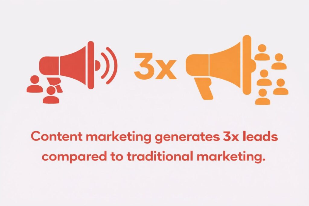 Content marketing generates approximately three times more leads than traditional outbound marketing, typically at a fraction of the cost. That ratio holds because the leads are self-qualified. Someone who finds your content, reads it thoroughly, and downloads a resource or fills out a form has already demonstrated interest and intent.