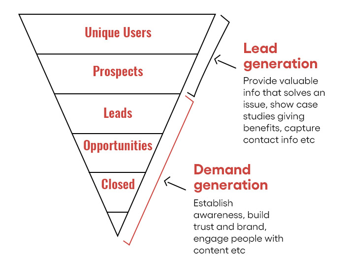 The keyword is “demand” — you are creating or accelerating desire that does not fully exist yet. This is primarily a top and mid-funnel function, and the metrics that govern it reflect that: